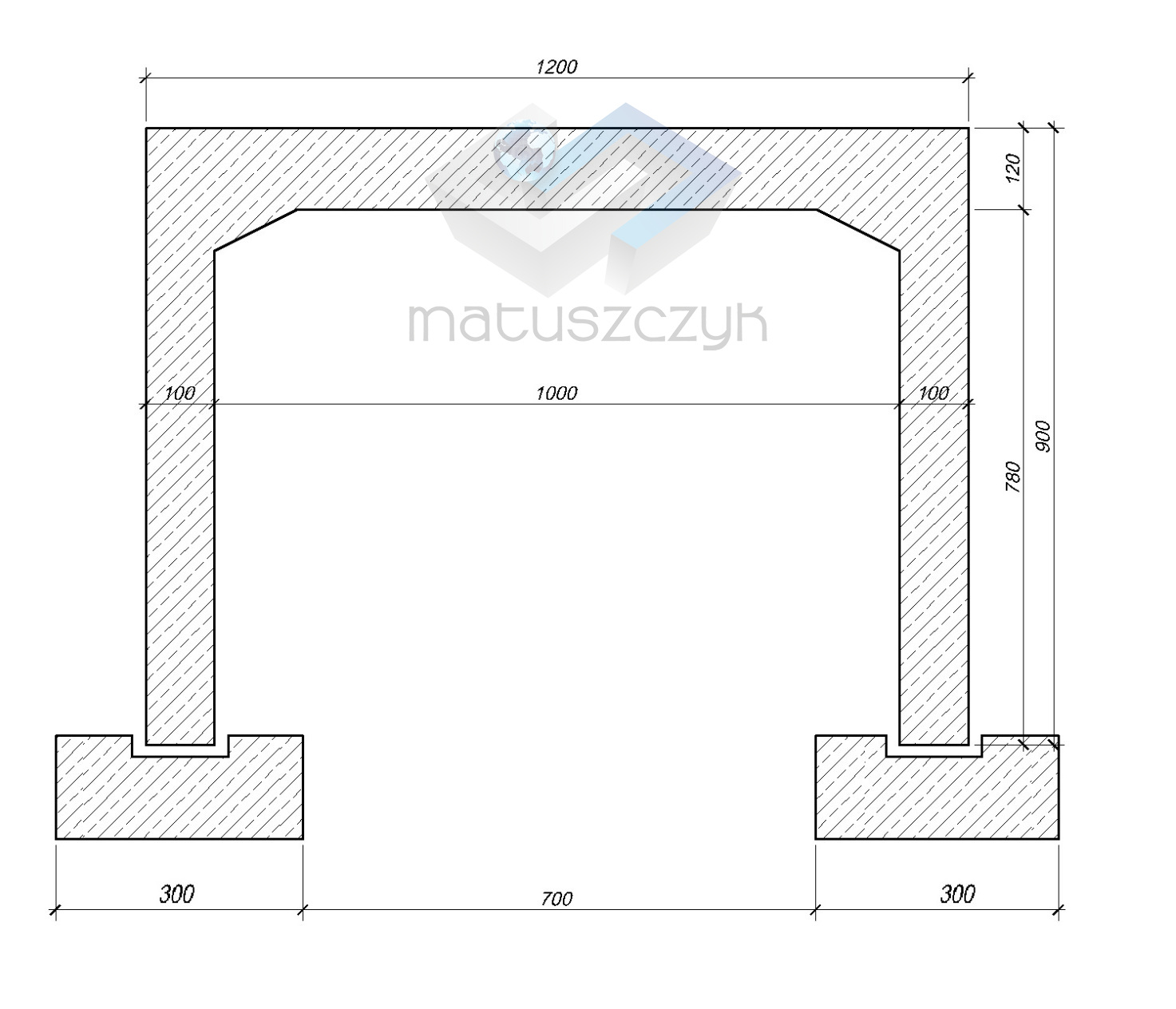 Pokrywa łupinowa wykonana z betonu klasy C35/45. Składa się z pokrywy i fundamentu o długościach 1 m. Ciężar kompletu 600 kg + 2 x 145 kg.