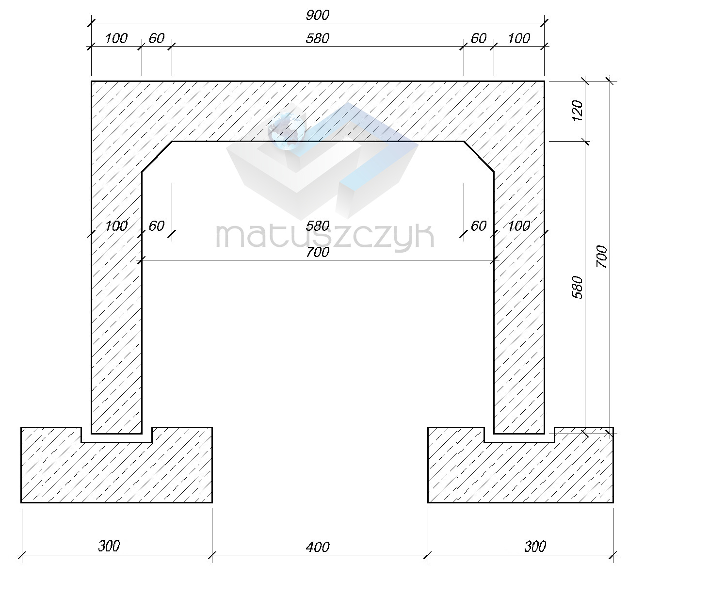 Pokrywa łupinowa wykonana z betonu klasy C35/45. Składa się z pokrywy o długości 0,8 m oraz fundamentu o długości 1 m. Ciężar kompletu 550 kg + 2 x 145 kg.