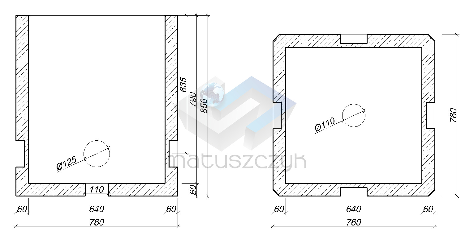Do budowy telekomunikacyjnej kanalizacji kablowej 1-otworowej dla rur Ø110 mm jako studnia optymalna przelotowa, odgałęźna lub narożna.